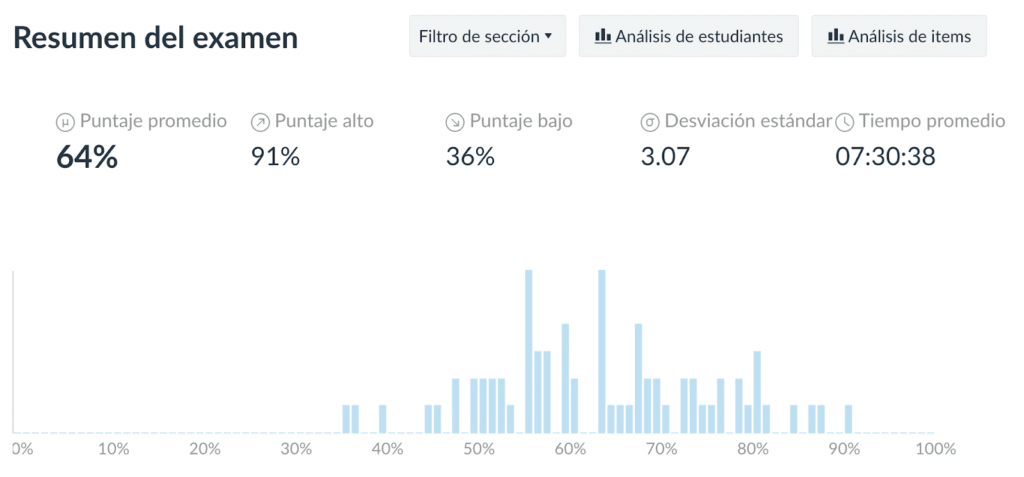 En la figura se ve que el puntaje promedio de esos 66 fue 64%