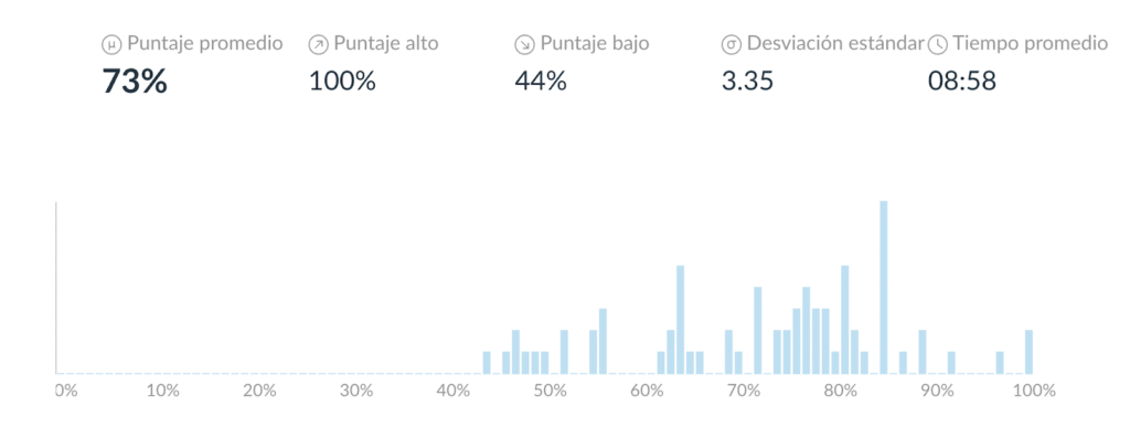 Se considera que el tiempo promedio para hacer la prueba tiene que ver con la suposición de que algunos estudiantes hayan dejado abierta la sesión sin concluirla.